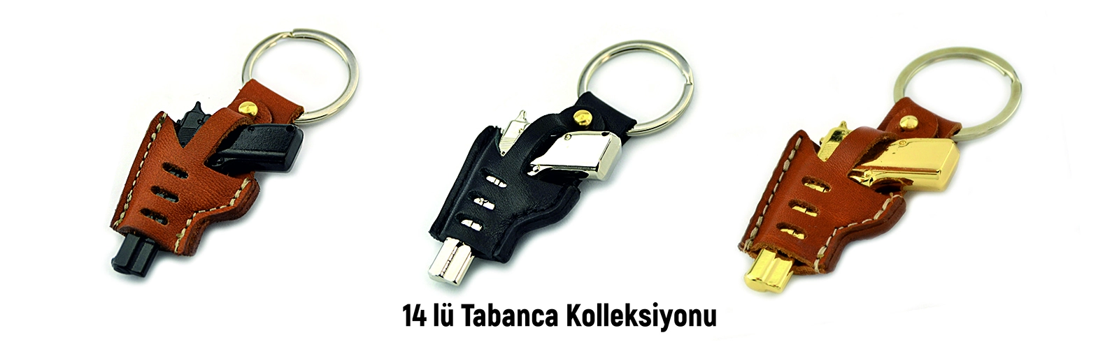 14 lü Tabanca Deri Kılıflı Anahtarlık (Taba)